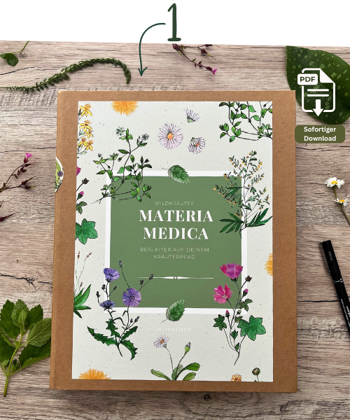 Die Materia Medica ist mein Herzensprojekt – entstanden aus vielen Jahren Pflanzenbegegnung, Naturverbindung und Aufzeichnungen an verschiedensten Stellen. Sie ist mehr als ein Notizbuch.Sie ist ein lebendiges Herbarium, das dich einlädt, Pflanzen nicht nur zu sammeln, sondern ihnen zu begegnen und deinen ganz eigenen Schatz an Erfahrung und Wissen festzuhalten.
